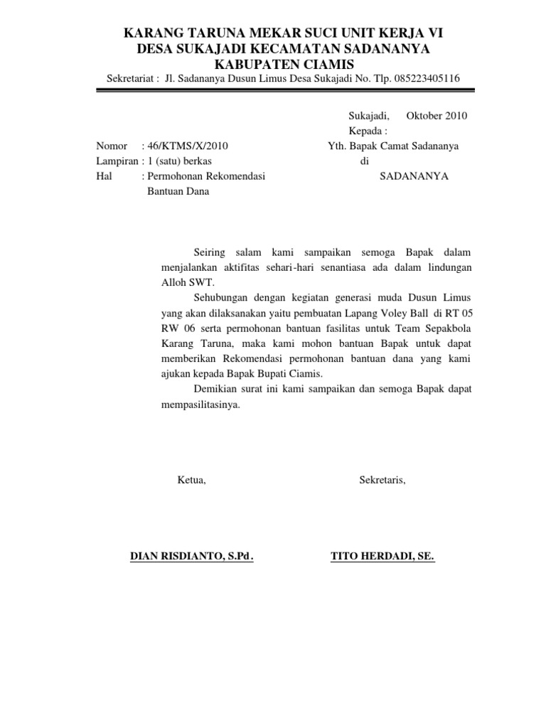 Contoh Proposal Bantuan Dana Volly Ball - Barisan Contoh