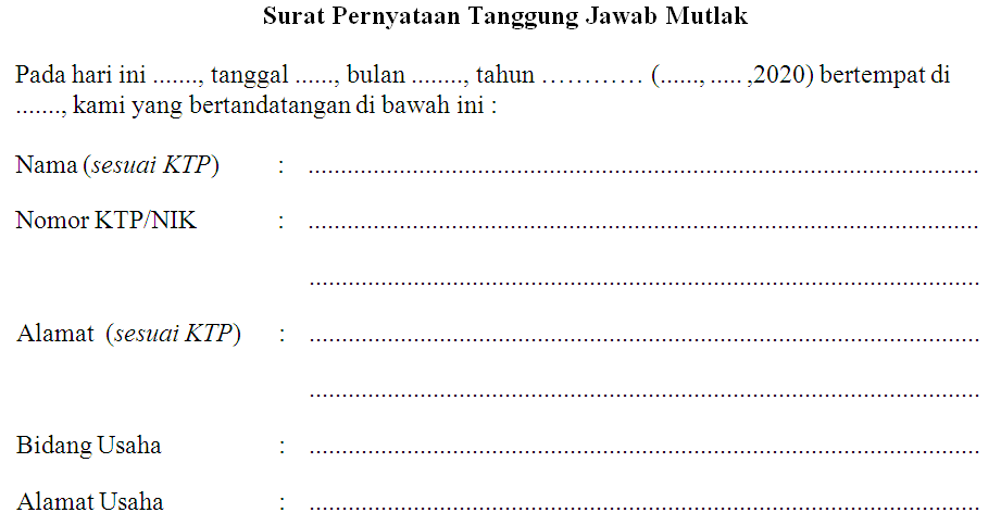 SURAT PERNYATAAN TANGGUNG JAWAB MUTLAK untuk Bantuan UMKM ...