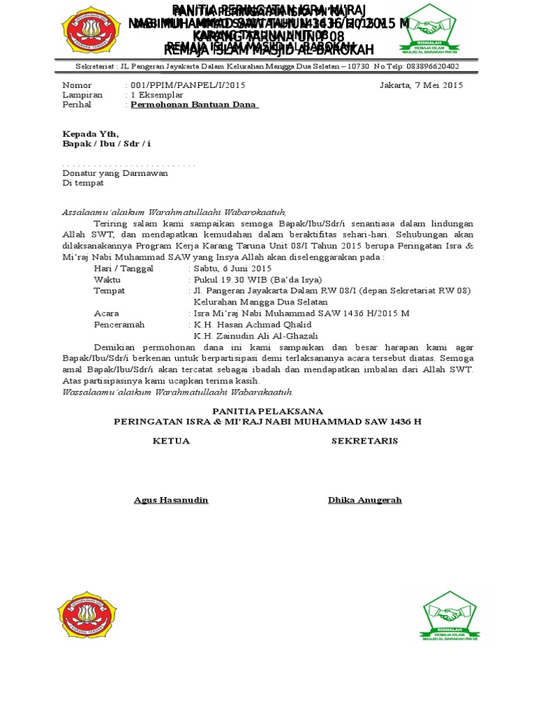 Contoh Proposal Permohonan Dana Isra Mi'Raj - retorika