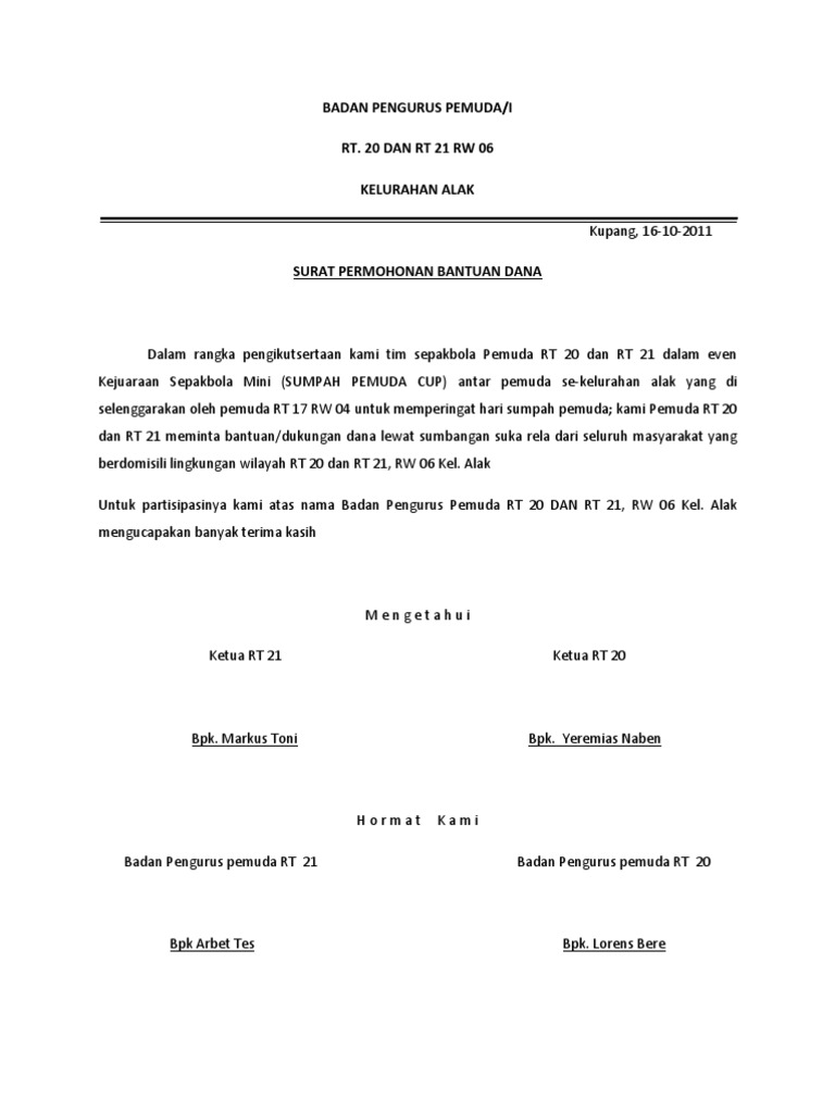 Contoh Proposal Permohonan Bantuan Dana Pelaksanaan ...