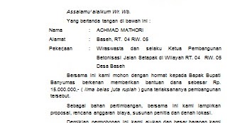 Contoh Proposal Bantuan Dana Pembangunan Jalan Lingkungan. Unsur yang perlu dicantumkan dalam pembuatan proposal tersebut antara lain, surat pengantar dari pihak yang mengajukan, judul proposal. Contoh Proposal Pengajuan Dana - Proposal adalah sebuah sarana untuk mengajukan dana pada suatu kegiatan, baik dalam lingkup sekolah, masyarakat desa, sampai pada lembaga negara.