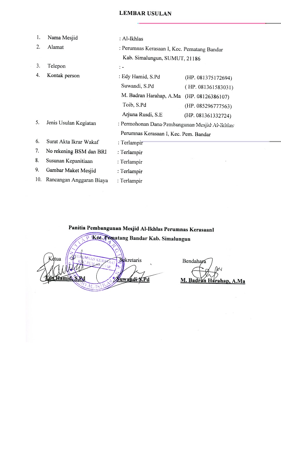 TA'MIR MASJID AL ISTIQOMAH Ketua Sekretaris WARIMIN JAENUDIN Mengetahui.